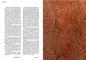 Frameworkwas launched in FDR6 as a specific arts section, with part one in the special in-depth interview Andy Goldsworthy interview. The feature looks at both Goldsworthy’s ephemeral work and his use of and integration with new media and performance art, including the Haines Gallery web-collaboration; the multimedia performance dance collaborations, Rite du Temps and Vegetal with France's Ballet Atlantique, as well as Goldsworthy's 2003 Moonlit Paths installation in Sussex and the Barbican Time exhibition. FDR6also features exclusive interviews with multimedia performance artists Russell Mills and Cardiff partnership, Artstation. Mills, the uncategorisable post-punk illustrator-painter, talks about both his historical work as Ambient