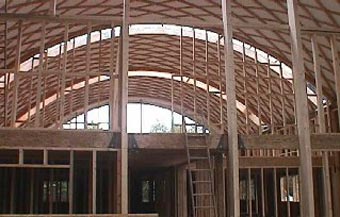 fingerjointed laths, bolted together, comprising the barrel vaulted