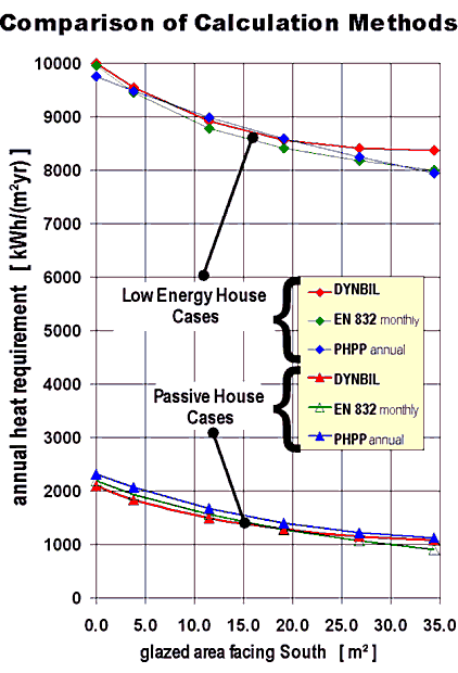 PHPP calculation comparison graph between Passivhaus and low Energy House