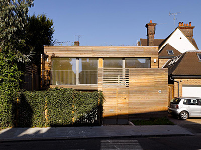 home. It was completed and certified two years later in 2009. The same summer the first of Bere’s Passivhaus projects, Camden Passivhaus was underway. Another domestic dwelling, the timberclad building in a leafy and upmarket part of Camden council, North London, is the most consciously architectural example of the first wave, seemingly significantly influenced by Bere’s Vorarlberg visits, looking not unlike well known Vorarlberg architect Hermann Kauffmann’s residential designs. It was completed during the next 2010 summer.