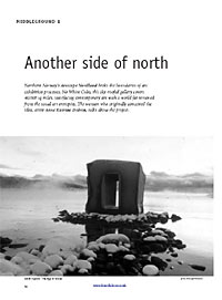 Although earlier FDR’s did not feature a specific arts section, arts coverage has always been part of the reviews focus. FDR5 highlights a specially themed section on contemporary Norwegian art, new media and new music, with a feature on the extraordinary 40,000 square mile sculpture park project Artscape Nordland which embraces the entire Northern Norwegian county or commune of Nordland, originated by Norwegian video artist and painter A K Dolven. There’s also a feature on neighbouring northerly Nordic Tromso ambient musician Biosphere. FDR5 also features art pieces; one by Tracey Warr on the relation of Earth Art to Consciousness and the whole terrain of Consciousness studies. Warr discusses the relation between such seminal earth artists as Robert Smithson, Charles Ross, James Turrell and more recent explorations such as London