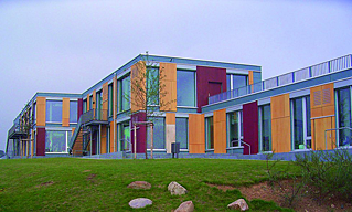 Helen Seymour Smith as well as several other partial self-builds. The same autumn, SimmondsMills completed the Centre for Disablility Studies in Essex to full passive specification. The same summer, 2009 it was clear that Passivhaus was also being taken up by a couple of architects working on new sustainable school buildings. Architype, influenced by Nick Grant, had bought into Passivhaus and were going through iterations of designs, but not getting them close to any building sites. In the West Country Devon County Council’s architectural department were already building a Passive primary school,
