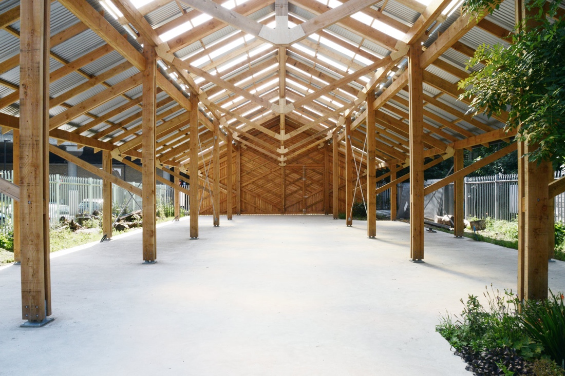 Alex Thomas and Jan Ciechanowicz, Timber Workshop and Pete Laidler, Structure Workshop, carpenters and engineers of the Oasis City Farm community barn