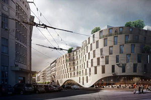 Their new housing bloc project, Cloud City, in the centre of Helsinki, will provide ALA with a home-grown focus, their first home-turf completed project. Designed to rise up on the footprint of a courtyard within a housing square, the nine-storey block uses a mirror façade material to reflect light and camouflage the visible section of the bloc above the city skyline. Presented as a compact city approach for increasing apartment capacity in one of the city’s leafy central neighbourhoods, the envelope isn’t visible from the immediate streets, although it would be spotted from near-by hill-raised parks, and from further distances. In Helsinki, still, although only just - a low rise city - the design has proved controversial; “The neighbourhood is very central, there’s a campaign opposing the project, states Nousjoki, “people are going crazy over this.” This pronounced urban agenda is again underlined by their most recent competition success, a mixed residential, office and commercial development in St Petersberg, where a brownfield site, on Khersonskaya St, in a busy part of the Russian city, has been made-over with a curving perimeter block, which Nousjoki describes as ‘thick and monolithic, with the thickness camouflaged,” although the façade will use several glasses for variety. Since last summer ALA have also won a further home city commission to redesign Helsinki’s west harbor district.