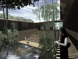 Boat, a Tsunami Memorial in Thailand in the aftermath of the life-crushing 2006 Tsunami. This was a similarly sensitive design concept, beginning with the folding of a small bamboo leaf into a miniature boat to be carried by the river, into the endless sea, the centre to be constructed from local bamboo, with recognisably local Thai vernacular features as well as more internationally recognisable materials; steel and glass. Although receiving a finalist’s award, had Avanto won this competition it would have allowed both Hara and Puustenen to add bamboo to that of timber and copper as part of their material palette. As it is they speak of an ongoing connection to Finland’s over-abundant traditional material, not surprising when considering that Hara elected to intensively study the material within the one year