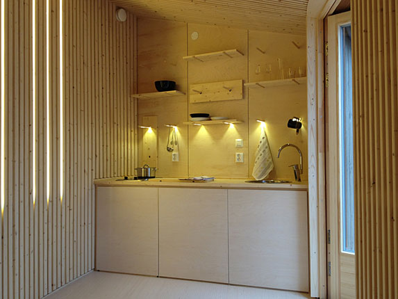 Piiri demonstrates an understanding of construction efficiency through systems based thinking and an overall minimization of space. The ambition of the project to minimize both building footprint and interior space puts high demands on the detailed design. With less than 12sqm of living space, the integration of lighting, storage and kitchen utilities into the surfaces of the interior provide a means of unifying the space to make it both comfortable and minimal.