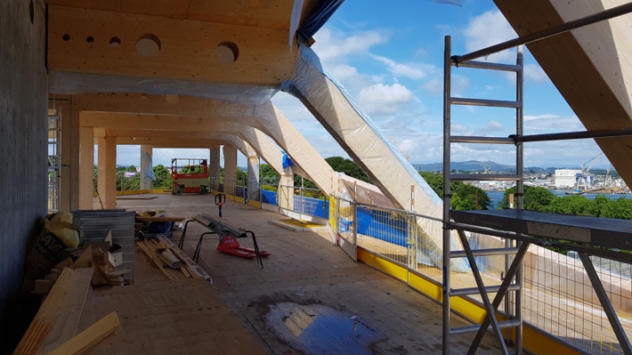 For Reinhard Kropf, Blumer’s contribution has been inestimable. These include the special dowel joints connecting beams to columns. “It’s a bionic approach,” he says when I talk with him over Skype some weeks after visiting Stavanger in December 2019. But Blumer’s involvement is also an invaluable card to be holding for the right moments. “He’s extremely experienced in doing the right thing at the right time, helping convincing clients to go for timber. Without him and the structural systems he has established this sort of design wouldn’t have happened.”