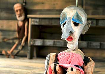 Mr Clevver, a roving residency in far away Tasmania, where the Morison’s moved from one outback village to another on board another sixties truck re-created into small-scale circus or fairground travelling troupe transporter. For the most part experienced puppeteers perform, with the making of the grotesque puppets, out of wood or clay, taken up by the artists. Puppetry had also played a part in their 2009 Bristol commission,