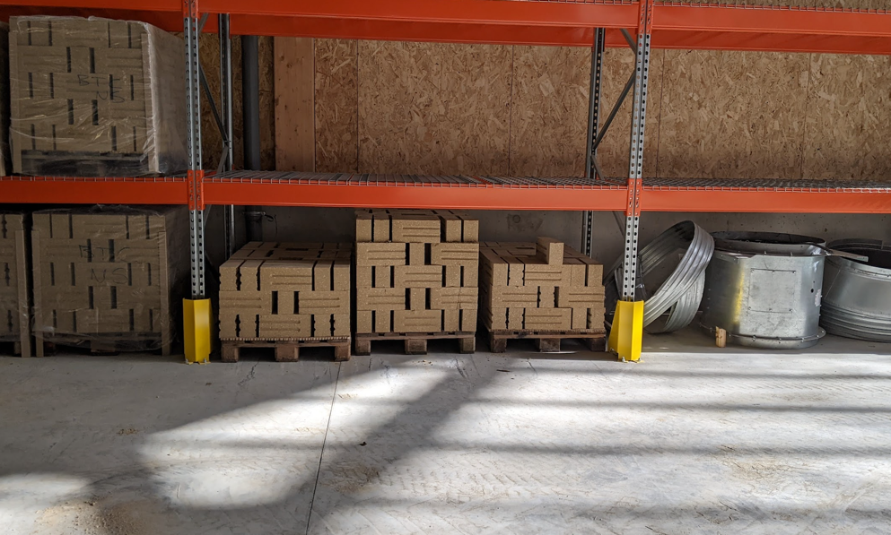 That at least is the ambition. A first showcase step towards creating future earth building network infrastructure, the facility is but a container for the main objective, spreading the word and the use of earth materials themselves. When I visited this February my guide, Silvia Devescovi, project manager of the Cycle Terre project, within Sevran Municipality noted the potential for such a network, though also a list of challenges. Size, for one, can be seen another way. The facilities relatively small footprint, 2400m2 constrains the site, and its production possibilities. The facility can produce up to 600, 000 bricks a year, Devescovi told me, as we walked round, the building, light glinting in through the open unwalled spaces. Devescovi walked over to one internal wall, pressed a button, and the doors gradually lifted revealing a large storage unit. Inside were stacks of compressed earth blocks (CEB) carefully stored away, this is the primary material slipping off the production line. The production number could have been higher, Devescovi said, had there been more storage space.