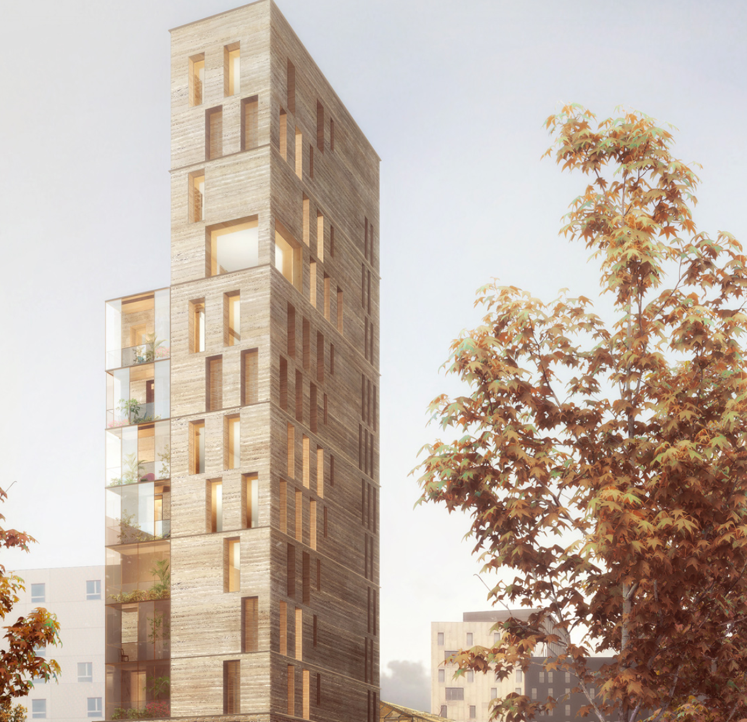 Paris, as the capital had an inevitable logic as the first site. At the same time, Hugo Gasnier, a recent PhD student, examined earth resources across the Ile-de-Paris region, highlighting the potential. JolyLoiret supported Gasnier, using his research on developing an earth tower concept. There was further input from Akterre, a small Rhone valley company who supported developing the production processes for mortars and plasters. Each added to the case CRAterre built for the project. The research would also generate new knowledge – such as earth block compression testing and acoustic evaluation and fire testing of CEB walls R&D - with the potential to spread more widely than earth constructions’ traditional base of the network of skilled artisans.
