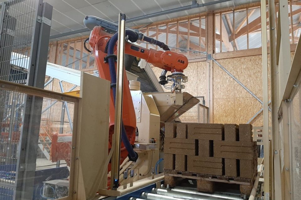 The tech involved, while limited is central to the production processes. The robot arm was developed by Etienne Gay, a young industrial machine designer from Grauhelt, near the southern city of Toulouse, who had first trialled and tested his Briques Technique Concept machine and had become the first French raw earth Compressed Earth Block manufacturer using robotics in France. Cycle Terre had bought and adapted one of his machines.